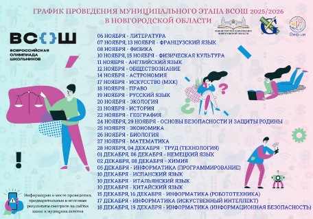 В соответствии с п. 14.7 Организационно-технологической модели проведения школьного этапа Всероссийской олимпиады школьников на территории Новгородской области в 2025/2026 учебном году, утвержденной приказом министерства образования Новгородкой области от 09.09.2025 № 1049 "Об организации проведения школьного этапа Всероссийской олимпиады школьников на территории Новгородской области в 2025/2026 учебном году" оргкомитет принял решение об увеличении квоты победителей и призеров школьного этапа Всероссийской олимпиады школьников по русскому языку. |