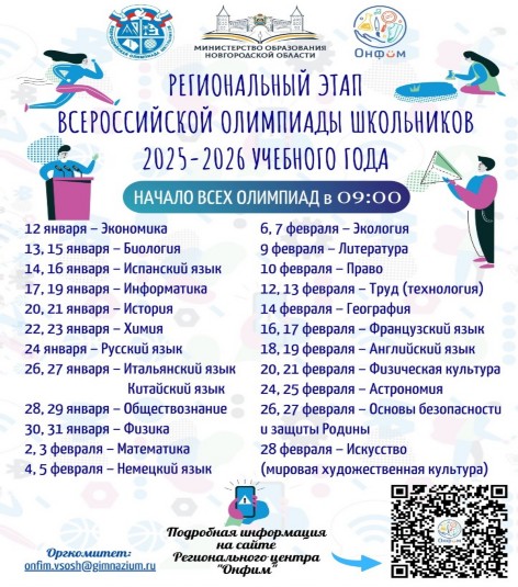 В соответствии с п. 14.7 Организационно-технологической модели проведения школьного этапа Всероссийской олимпиады школьников на территории Новгородской области в 2025/2026 учебном году, утвержденной приказом министерства образования Новгородкой области от 09.09.2025 № 1049 "Об организации проведения школьного этапа Всероссийской олимпиады школьников на территории Новгородской области в 2025/2026 учебном году" оргкомитет принял решение об увеличении квоты победителей и призеров школьного этапа Всероссийской олимпиады школьников по праву. |